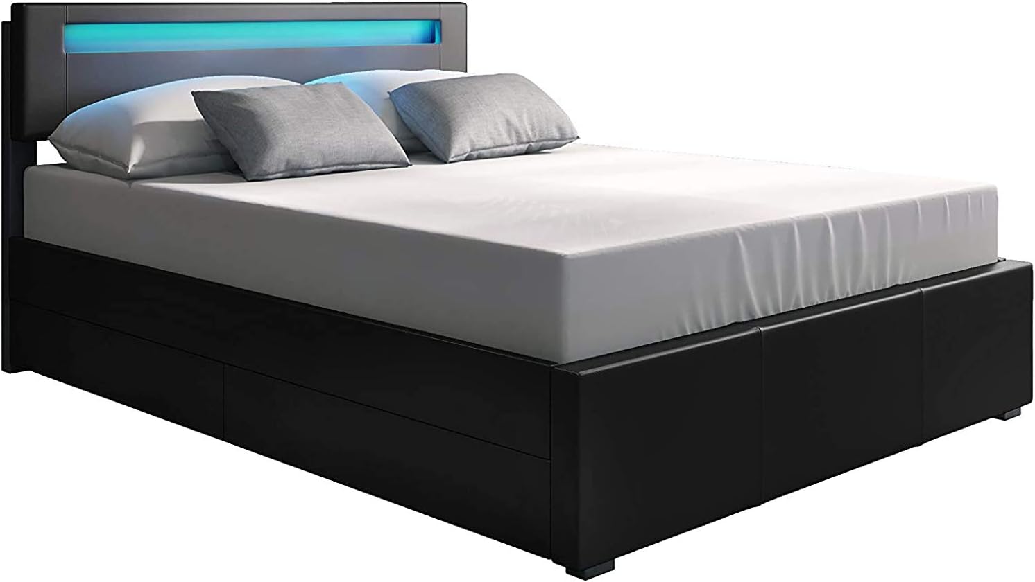 Jovenko Upholstered Led Storage Platform Bed Queen : Novogratz Kelly Upholstered Storage Platform Bed - Queen ... - Shop for upholstered platform bed queen online at target.. Cooc home furniture fabric simple designs full size wooden bed frame upholstered queen double size platform bedroom bed r06. Allewie queen platform bed frame with 4 drawers and headboard/diamond stitched button tufted upholstered mattress foundation with storage, dark grey. Spain made ultra modern platform bed w led headboard. Lift up storage platform bed. Constructed of faux leather, polyurethane foam and wood, this bed comes with slats and does not need for bunk board or box spring.