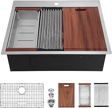 16 x 14 (41 cm x 36 cm), and a depth of 7 (18 cm). It offers a combination of robust construction and style, which makes it uniquely useful for any home. It has a rating of 4.9 with 65 reviews. It has a rating of 4.6 with 92 reviews. It has a rating of 4.7 with 79 reviews. Miseno 43 cast iron double basin kitchen sink for drop in installations with 50/50 split and sound dampening technology. Made from quality materials this sink has overall dimensions of 18 x 31 (46 cm x 79 cm), left bowl dimensions of 16 x 14 (41 cm x 36 cm), right bowl dimensions of: Made from quality materials this sink has overall dimensions of 21 x 32 (53 cm x 81 cm), left bowl dimensions of 16 x 14 (41 cm x 36 cm), right bowl dimensions of: Double bowl 20 gauge stainless steel top mount sink, with faucet ledge, 3 hole faucet drilling, spillway partition between bowls to prevent water on the counter, rear drains to allow for more storage below, and easy care satin finished bowls and silk deck. Made from quality materials this sink has overall dimensions of 20 1/2 x 20 (52 cm x 51 cm), bowl dimensions of 16 x 18 (41 cm x 46 cm), and a depth of 7 (18 cm). Made from quality materials this sink has overall dimensions of 20 1/2 x 20 (53 cm x 52 cm), left bowl dimensions of 16 x 18 (41 cm x 46 cm), and a depth of 9 (23 cm). One may assume that a 16 gauge sink is a better value simply because it is thicker than 18 gauge. Includes waste fittings, and is backed with a limited.
