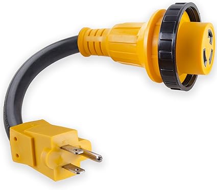 50 Amp Male To 30 Amp Female Twist Lock Adapter / Leisure Cords 90 Degree 50 Power Extension Cord With 30 Amp Male Standard 30 Amp Female 90 Degree Locking Adapter 30 Amp 50 Foot : Adapt 50 amp service to your 30 amp shore power cord.
